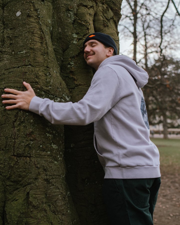 La veste TreeHoodie Jacket Anniversary en couleur lilas combine le confort d'un sweat à capuche et la polyvalence d'une veste – parfaite pour les journées fraîches et pour un look moderne en superposition. La broderie fine sur le devant apporte une touche subtile et élégante, tandis que le grand imprimé Treehugger dans le dos affiche clairement le message de durabilité et de proximité avec la nature. Ce motif graphique fait de ce sweat à capuche un véritable accroche-regard.